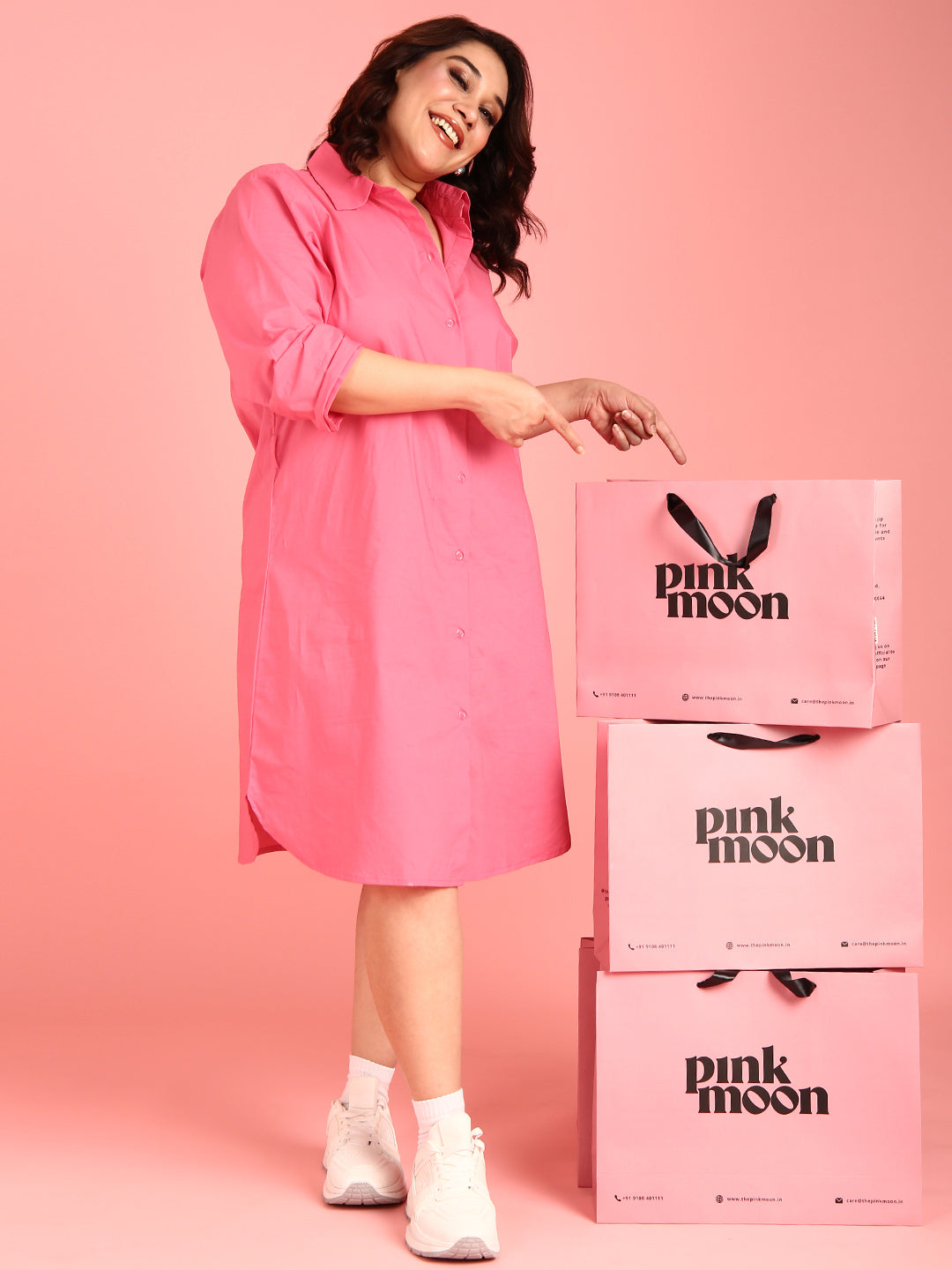 Navigating the Crazy World of Fashion as a Plus-Size Woman Fashion is an art form that never stays the same. Fashion empowers individuals to express their personalities and styles in their own unique way. However, for curvy women, navigating the world of fashion can sometimes feel challenging. They have to push through an added trial of biases and assumptions in order to get to their fashion destination. But don’t worry, your fearless and stylish tour guide- The Pink Moon is here to help you find the best curvy body outfits! What are some of the different plus size body types? 1.Pear-shaped: If you have fuller hips, thighs but have a narrow upper body, your body type is pear shaped! 2.Apple-shaped: If you notice that you carry most of your weight in your midsection with a fuller bust and waist, you have an apple-shaped body type! 3.Hourglass: If your bust and hips are the same width but you notice your waist is a bit more well-defined, you have an hourglass body type! 4.Triangle: Does this sound familiar? Narrow shoulder, smaller bust but wide hips? If it does, then you have a triangular body type! So many beautiful body types but we choose to glorify only one! Society needs to get a hold of themselves! Let’s do a little activity, shall we? Go to your closet and pick all the clothes that don’t make you happy/ I’m talking about your baggy and dull clothes. Your “I’ll wear it when I’m thinner” clothes and those clothes that give you no figure whatsoever. Donate or recycle those clothes because we are done with them. Choosing clothes for a plus-size body is a little more challenging but just as fun, don’t worry! Pick clothes that show off your favourite part of your body. Every body is unique, and identifying your body shape can help you choose outfits that flatter your best features. I mean, if you don’t take the time to understand your body then who will? We’ve talked about body types but now let’s see what kind of clothes suit and enhance our body type! Here is how to dress your different curvy body types! 1.Pear Shaped Plus size A-line dresses and skirts are the way to go! They accentuate the waist but flow over the hips and legs. Plus size Off-the-shoulder or boat neck tops draw attention to the upper body and those fabulous collar bones. Plus size Wrap tops or dresses to draw attention to the waist while also flattering the hips (a dream come true!) Apple Shaped Empire waist dresses flow over the midsection but highlight the bust. They hug you in all the right places. Pick Plus size tunic tops with V-necks to elongate the neck. Structured and tailored plus size blazers not only make you feel like the boss you are but also help define your waistline. Hourglass shaped Bodycon dresses! They showcase the curves but also maintain a balanced look. A classic curvy hourglass outfit! Pick fitted tops and blouses that accentuate your waist. Pencil skirts hug the curves and highlight that amazing hourglass shape. Triangle shaped Patterned flowy tops or tops with embellishments add volume to the upper body and takes the attention away from the lower half. Flared skirts are a must to balance out the proportions. Wide-neck or off-the-shoulder are always your go-to tops to broaden the shoulders. Some additional tips to keeping it classy with your curvy body are: Invest in some quality pieces: Choose well-made, high-quality clothing that fits you perfectly. Opt for classic yet timeless styles: Classic pieces like tailored blazers, pencil skirts, and well-fitted trousers can create a polished and classy look. Choose sophisticated colours: Neutral and classic colours such as black, navy, beige, and burgundy exude elegance. Avoid excessive embellishments: Keep it simple and elegant, focusing on clean lines and minimal details. Proper fit is key: Tailoring your clothes to fit your body perfectly can make a significant difference in how polished and classy you look. Confidence is the key accessory: Embrace your curves with confidence, as it can make any outfit look classy and sophisticated. Embrace Your Personal Style and Learn to Experiment: Now experimenting is not just in your high school chemistry class, it works in fashion too! How are you going to know what flatters you, if you just stick to the same T-shirt and your go-to jeans (Yes, we’re calling you out). Patterns, prints and colours! There are so many outfits to choose from! Finding your personal style is a journey but it’s a journey you’ll be glad you went on. Let’s talk about plus-size dresses, they’re perfect for any body type! A fit flare would be amazing for a pear shape body while an A-line dress would absolutely kill in a triangle-shaped body! Don't be afraid to mix and match and try out a billion trends to find what suits you best. Fashion is all about expressing yourself, not that model on the magazine cover. So let YOUR creativity shine. Embracing your personal style as a plus-size woman is a wonderful way to express your individuality and feel confident in your appearance. Here are some pointers to help you in this journey: You gotta explore, girl! : Explore different styles, looks and fashion inspirations! Don’t be afraid to step out of your comfort zone! Love your body : Focus majorly on the all the things you love about yourself. We have to put a stop to all that negative talk! Remember that beauty comes in all shapes and sizes and all of them are worthy of love! Comfort is Key: Style should not come at the cost of comfort! Choose fabrics and designs that feel good against your skin and allow for ease of movement. Find Flattering Fits: Remember when we talked about body type? Stick to that and find clothes that flatter your shape! Clothes that are popular might not be the clothes that make you feel comfortable and stylish! Accessorise, honey! : Use accessories to elevate your outfits and add a personal touch. Scarves, jewellery, handbags, and shoes can really take your outfit to the next level! I