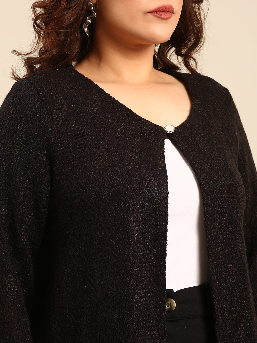 A sleek essential that defines modern elegance, this black one-button jacket adds effortless structure to any outfit. Crafted from smooth, refined fabric, it features a clean tailored silhouette with a single-button closure that creates a sharp, elongating effect. Lightweight yet polished, it transitions seamlessly from workdays to evening plans an easy, versatile layer designed to elevate your style with minimal effort.